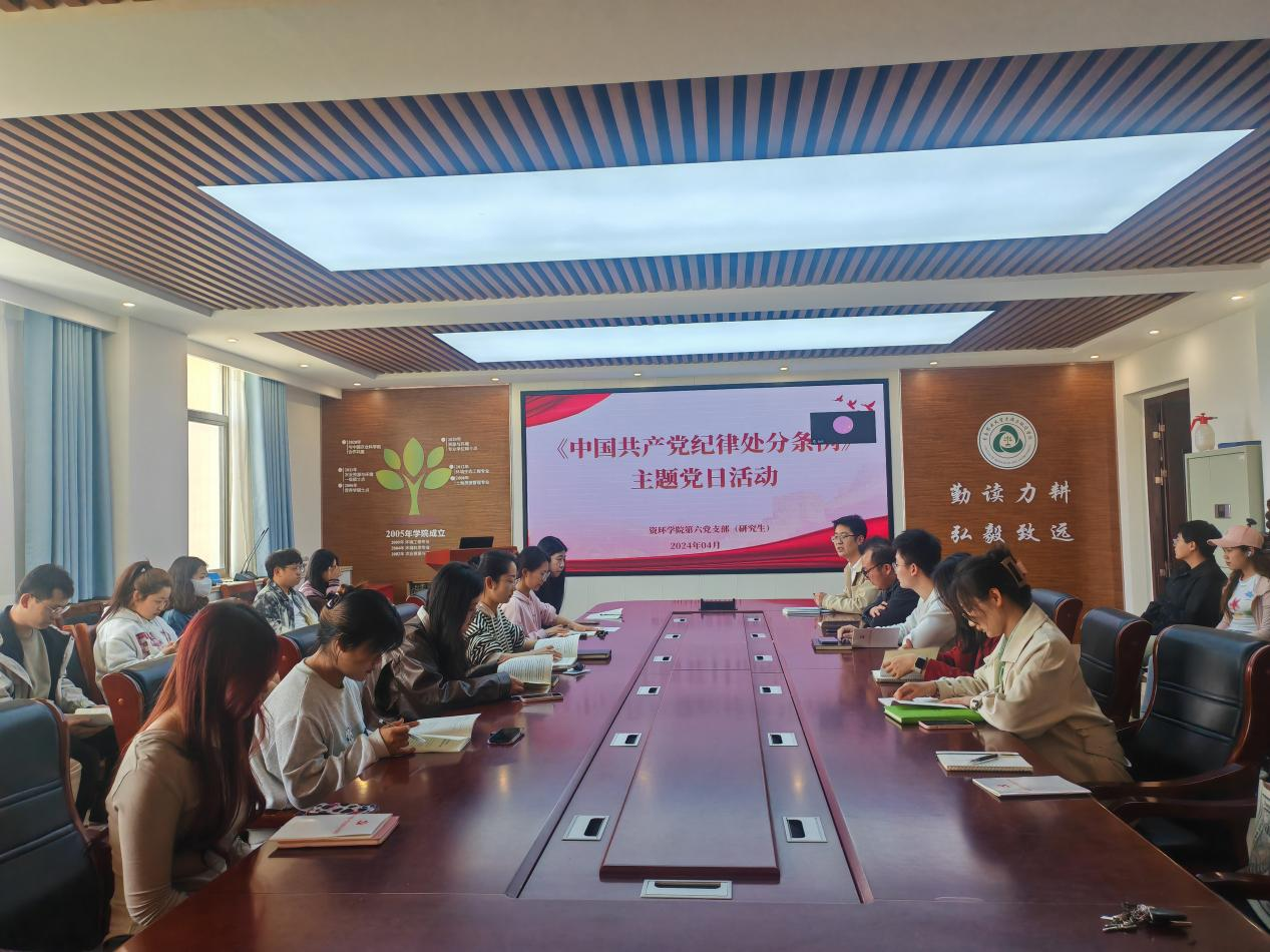 4月18下午,公司第六党支部(研究生)在化学楼423会议室开展了党纪学习教育动员部署会,集中学习《中国共产党纪律处分条例》,会议由支部书记孟新翔主持,支部全体党员参加。