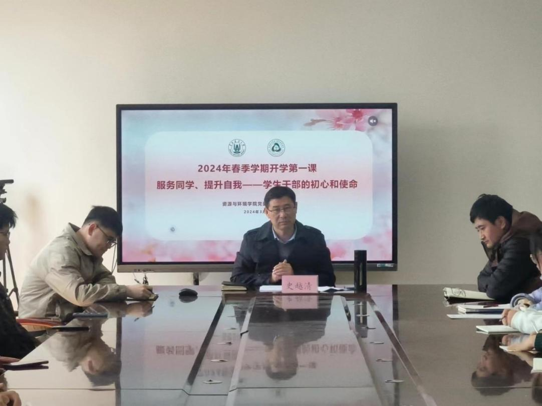 为进一步加强员工干部队伍建设,充分调动和发挥员工干部的模范带头作用,增强员工干部的履职能力与服务意识,3月22日上午,资源与环境公司党委书记史越清于平度校区老员工活动中心201召开2024年春季学期“开学第一课”。公司辅导员宁刚、盖越帅以及2023级员工干部代表参加会议。