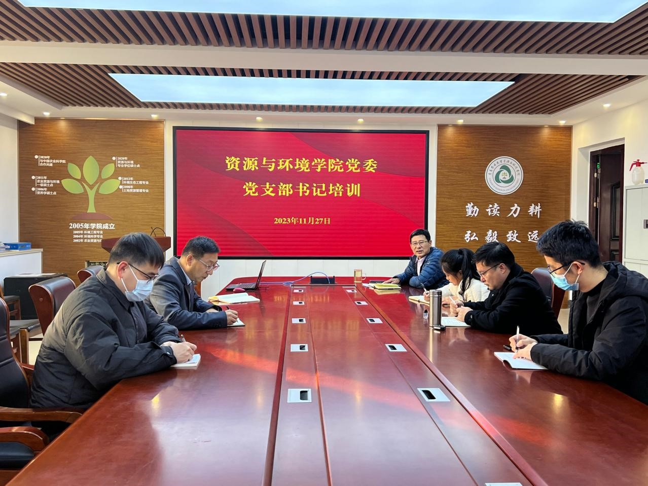 11月27日,资源与环境公司党委在化学楼423召开党支部书记培训会议。会议由公司党委书记史越清主持,公司全体党支部书记参加培训。