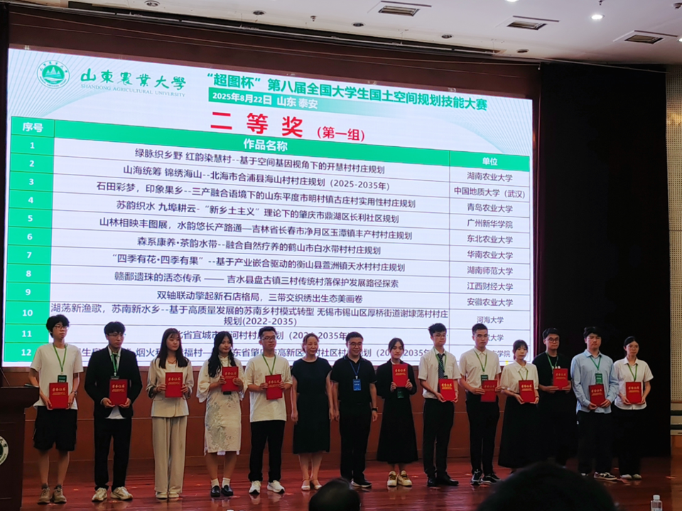 8月22日,“超图杯”第八届全国老员工国土空间规划技能大赛决赛在山东农业大学成功举办。由伟德BV官网韩玉杰、祝秀芝、宗全利三位教师指导,土地科学与技术专业2023级员工张松岩、付鸣欣、吕嘉瑞、庄濛帆组成的项目团队在比赛中凭借优异表现,从众多参赛队伍中脱颖而出,最终斩获二等奖。这是公司土地科学与技术专业学子首次在该赛事中获奖,展现了资环学子扎实的专业素养和出色的实践能力。值得一提的是,6月13日,在“安州杯”第一届山东省国土空间规划技能大赛中,该项目团队从87支参赛队伍中突围,获得三等奖,此次国赛获奖是团队实力的持续彰显。