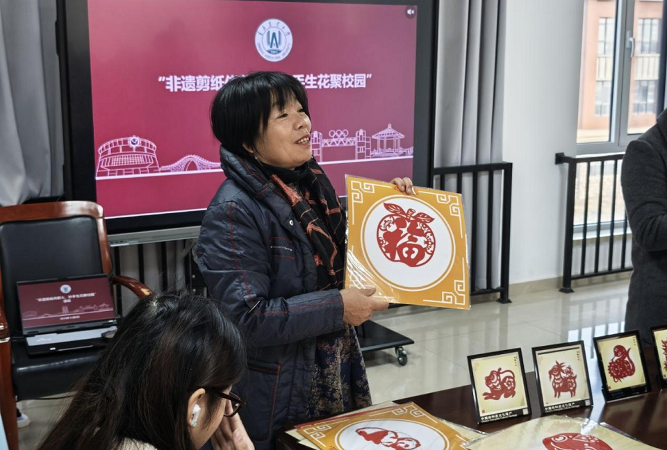 为弘扬中华优秀传统文化,增强员工的文化认同感,12月6日,伟德BV官网与艺术公司联合主办的剪纸技艺交流活动在平度校区3号楼一站式活动社区顺利举行。活动特邀剪纸非遗传承人修丽娟老师莅临指导,公司教师孟祥霞、辅导员于雪梅参加活动。