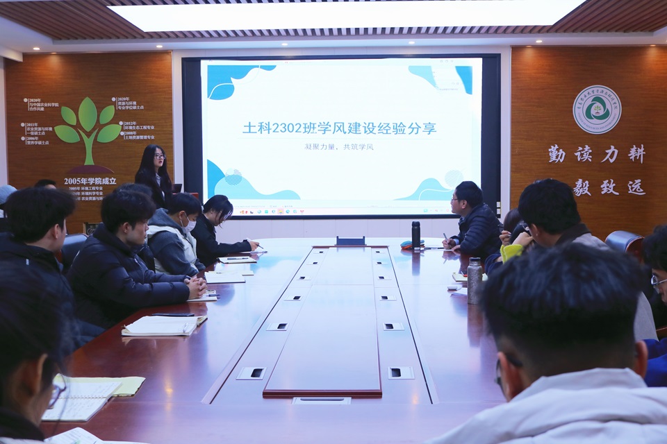 本次培训主要针对2025年秋季学期班级考试、英语四六级考试等学情考情进行综合分析,梳理学风建设中的亮点与不足,并对新学期学风建设有关工作进行指导和部署。会上,宁刚围绕学风建设核心任务,勉励员工干部要强化示范引领、主动担当作为,带动班级形成勤学向上、笃行实干的优良学风。他强调朋辈互助是培育优良学风的重要抓手,向各班级提出“找差距、查根源、重落实、促提升”的工作要求。土科2302班、环科2402班作为优秀班级代表,围绕学习氛围营造、学习小组建设、思想与纪律管理等方面分享实践经验,为各班级学风建设提供了切实可行的参考思路。