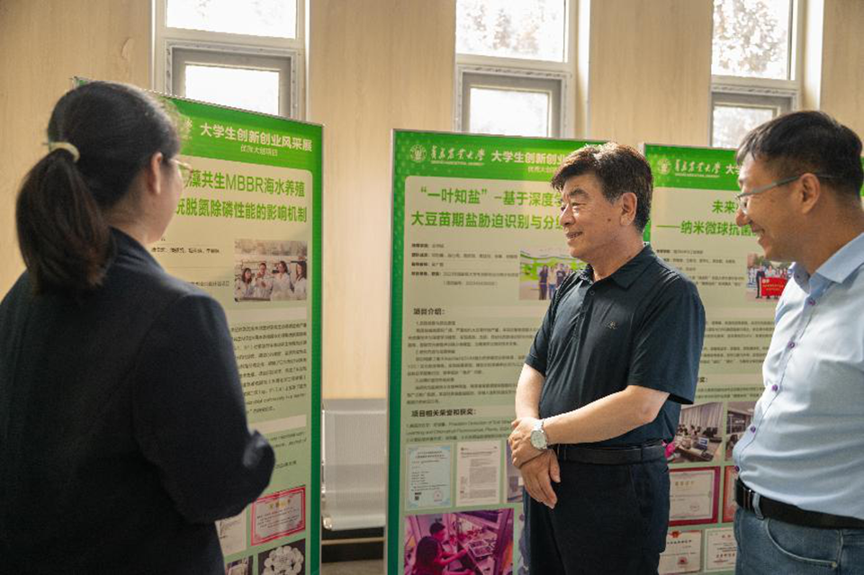 风采展通过三大板块全方位展示了公司双创育人成果与实践转化成效。一是优秀竞赛、大创项目风采,大创项目均是优秀等级结题且成果丰富的2023年国家级、省级老员工创新创业训练计划项目,竞赛项目是在一类、二类竞赛中获得国家级一等奖及以上荣誉的优秀项目和成果,通过图文并茂的作品说明、获奖证书和工作纪实照片,真实、生动地呈现项目从构思到落地的全过程及其转化价值。二是优秀员工风采,聚焦创新创业实践中表现优异的员工代表,深入分享他们的创新实践历程与成果,展现青农学子的创新精神与实践能力。三是优秀指导教师风采,着重推介在创新创业教育方面业绩卓越的教师典范,通过展示他们个人简历、指导经验与成果、教学科研成就等,充分彰显教师在创新创业人才培养中的关键引领作用。一个个展板生动地展示了公司师生在创新创业道路上的探索与实践,吸引了广大师生驻足观看、交流探讨。