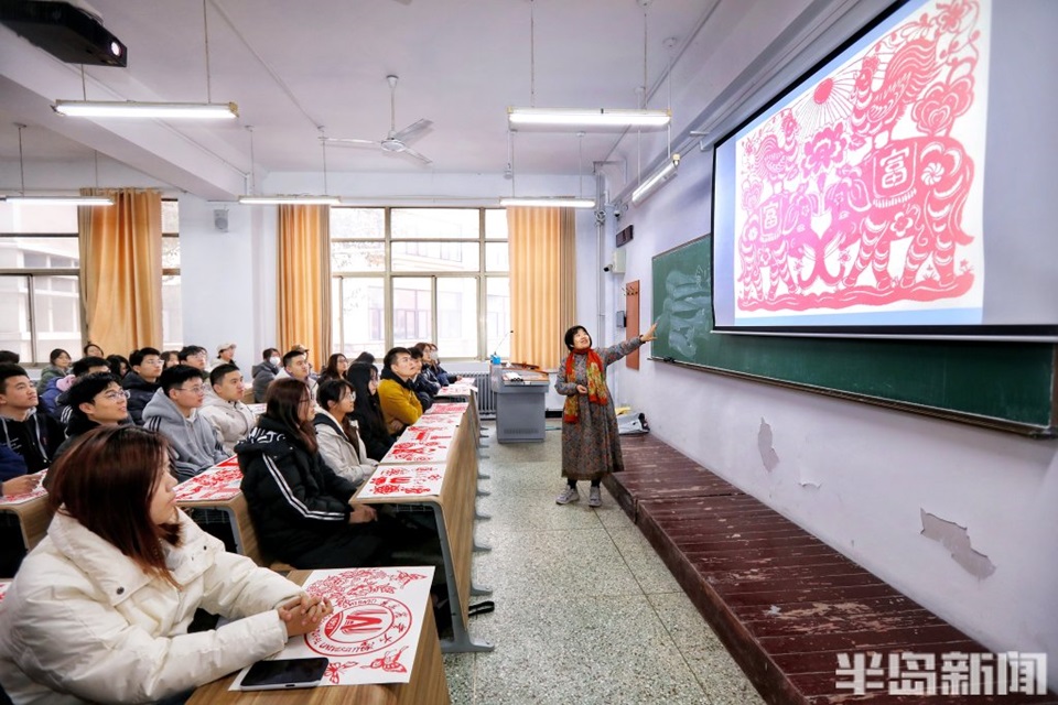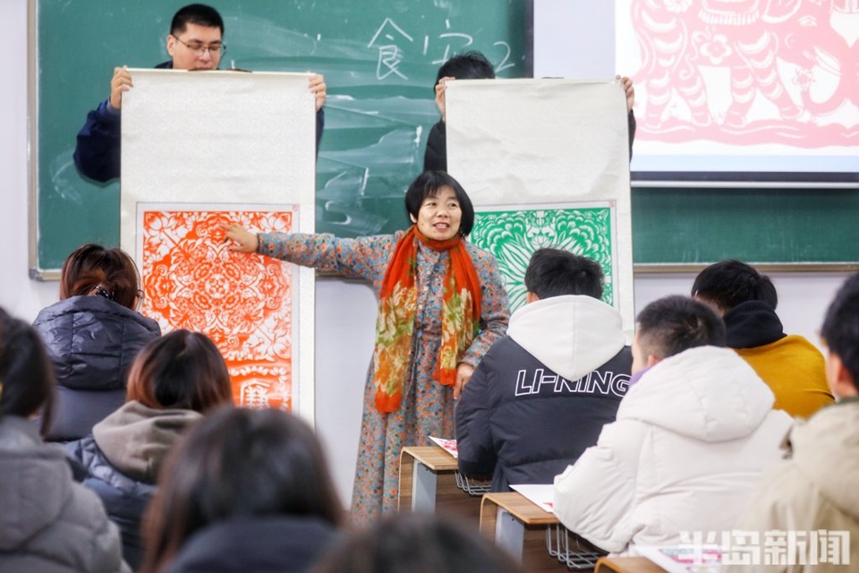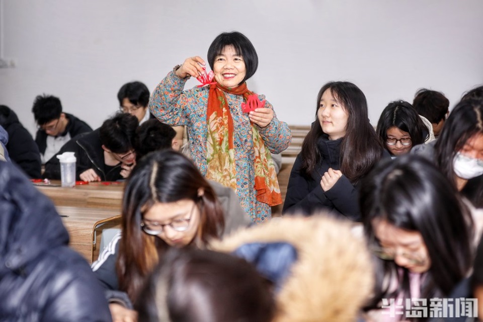 20年来,孟祥霞的剪纸课堂不仅教会了员工们如何用剪刀刻画图案,更让他们感受到了传统文化的魅力。她的课程《民间艺术欣赏与制作》被誉为青岛地区大学特色课程,而2021年新开设的《民间美术鉴赏》同样火爆异常。“孟老师的课让我重新认识了剪纸艺术,”课堂上一名员工感慨道,“原来一张纸、一把剪刀,就能创造出这么美的世界。”