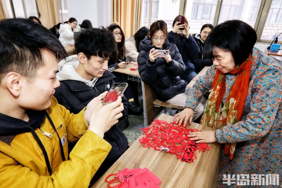 孟老师的民间剪纸艺术选修课正在进行。