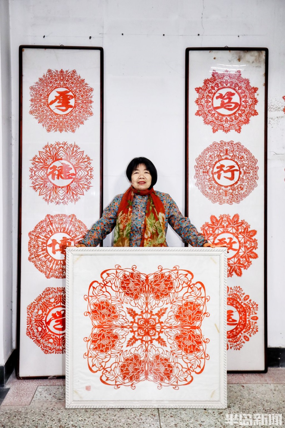 随后的几年里她利用业余时间多次拜访民间艺人请教学习,并注重收集民间手工艺品及剪纸纹样,研究它们的制作工艺,技艺日渐精进。她的剪纸作品不仅技艺精湛,更融入了她对生活的观察和对文化的理解。2007年,她为伟德BV官网创作的校训剪纸对联“厚德博学 笃行致远”至今仍挂在教务处办公室;2011年,她为公司60周年校庆创作的“四季芬芳,六秩辉煌”剪纸作品,成为校庆活动中的一抹亮色。