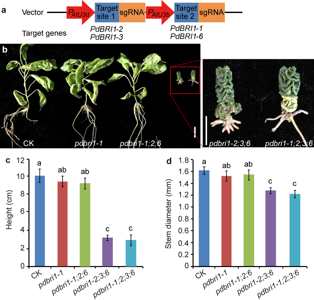 图2. PdBRI1s基因编辑杨树的茎表型