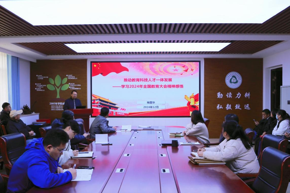 柴国华老师对全国全省教育大会精神的要点进行深度解读,阐释了教育所蕴含的“三大属性”“五大关系”以及“六个力量”,倡导教师们深刻领会教育家精神,立志成为新时代的“大先生”,为教育事业奉献力量。柴国华老师还聚焦于“推动教育科技人才一体发展”政策进行分享,一是高校应提升自身功能定位,全力推动教育、科技与人才的深度融合发展;二是提升创新能力,充分激活科研育人功能;三是大力倡导强化校企科研合作,全力加强以企业为主导、高校和科研院所为支撑的产学研深度融合模式。