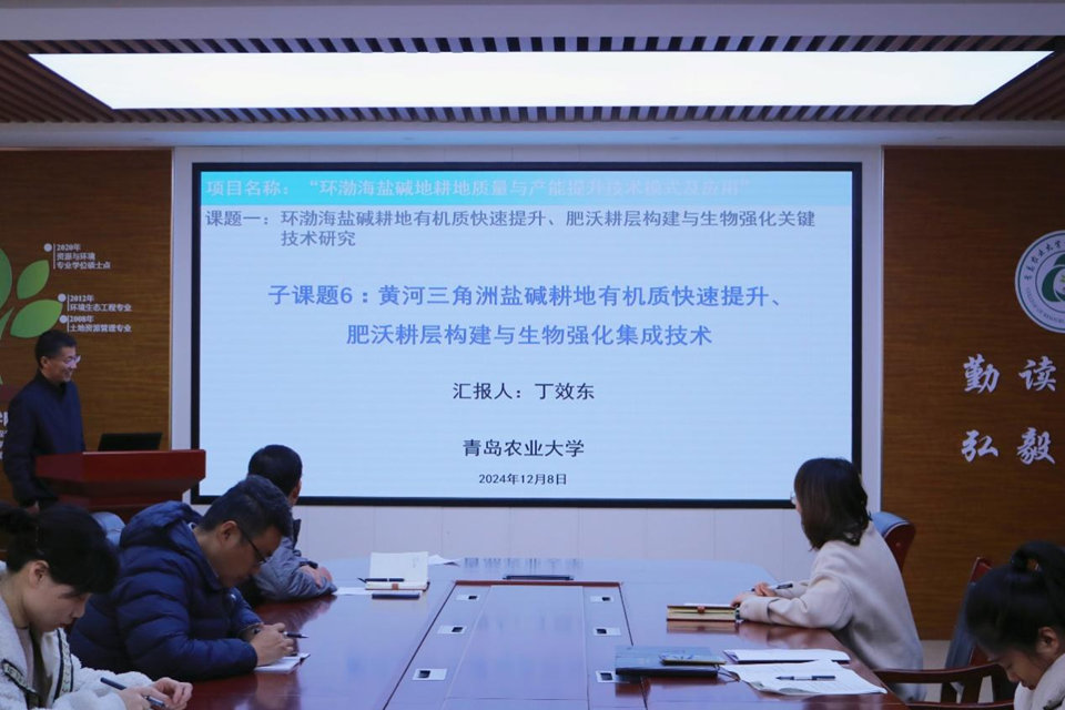 丁效东结合自身学术科研情况,就项目“环渤海盐碱耕地质量与产能提升技术模式及应用”的子课题 ——“黄河三角洲盐碱耕地有机质快速提升、肥沃耕层构建与生物强化集成技术”进行了详细汇报,内容涵盖了课题的进展状况和各项指标的完成情形,阐释了相关技术手段与模式。通过实际数据与案例,直观展示了在多元技术综合运用下,黄河三角洲盐碱耕地质量显著改善的成效,为在场教师的科研工作提供了清晰且具有启发性的思路,有助于推动相关领域的科研探索向纵深发展。