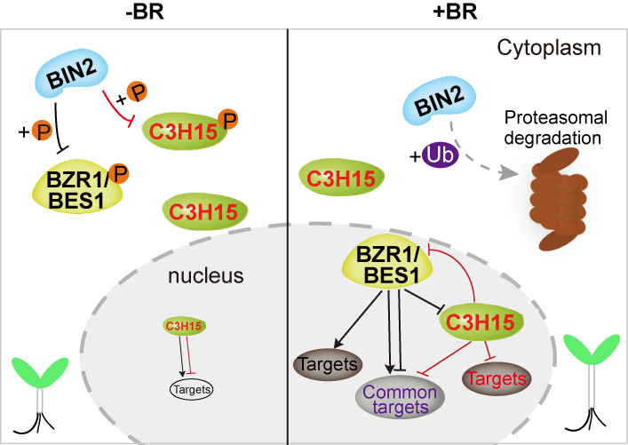 Fig.8 C3H15抑制BZR1/BES1依赖的BR信号调控细胞伸长的模型