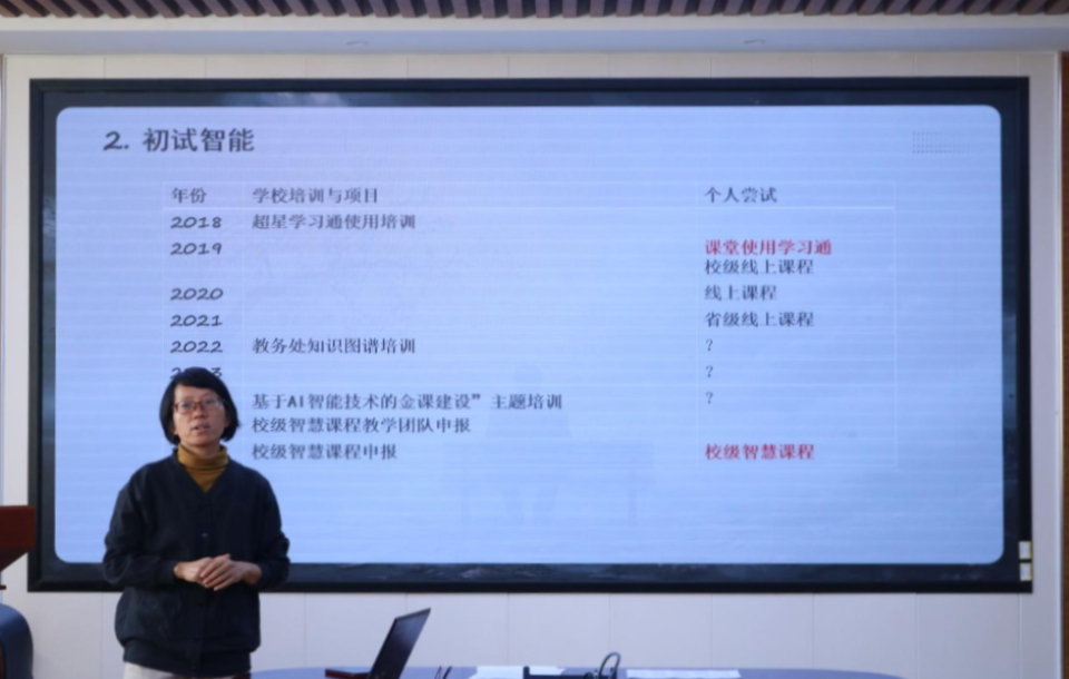 会上,周克老师以《我的智慧课程之路——从旁观到初试》为题展开分享。她围绕个人对AI融入教学的态度转变,生动讲述了从疑惑观望到主动应用、探索适配的实践历程。周克结合自身经验,现场用知识图谱工具,以实际案例直观展现AI在整合学科资源、拆解复杂问题、提升教学直观性上的优势,印证其在生态学科教学中的实用价值。她建议老师们需突破传统教学思维,要“敢于尝试AI技术”,更要“善于结合学科特点活用AI”,让技术助力教学提质增效。