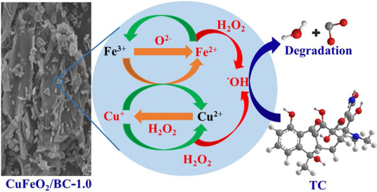 图1 CuFeO2/生物炭活化H2O2降解四环素的机理