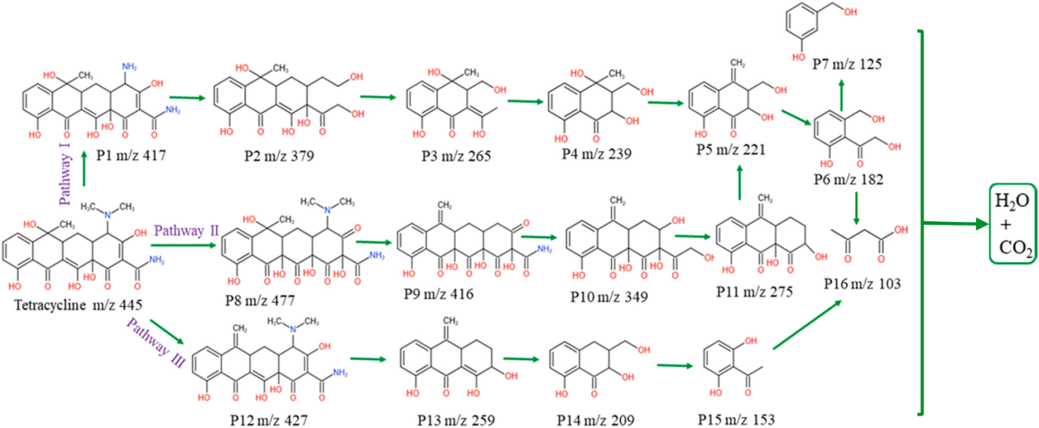 抗生素具有抗生物活性和化学稳定性,残留在水环境中会诱导抗性基因和耐药细菌的出现,对生态环境和人类健康构成严重威胁。该论文针对异相Fenton催化剂在处理水中抗生素存在中性条件下活性低、H2O2利用率低、Fe(Ⅲ)/Fe(Ⅱ)转化速率不高的问题,开创了一种以农业固废源生物炭为载体制备强稳定性、高催化活性和可回收性CuFeO2/生物炭异相Fenton催化剂的新策略,实现了多功能CuFeO2的低成本可控制备,解决了CuFeO2易团聚、比表面积小、制备过程需外加还原剂等技术难题。该研究工作系统的表征了CuFeO2/生物炭催化剂的微观形貌、光学性能和光电性能,提出了以苜蓿衍生氮氧自掺杂多孔生物炭为催化剂通过电化学方法原位生成H2O2的新策略,构建了以CuFeO2/生物炭为异相催化剂对水中四环素具有高效降解性能的异相Fenton、异相光Fenton和异相光电Fenton技术,阐明了不同处理技术降解四环素的限制性因素,揭示了四环素的降解机理,评估了降解四环素的生物安全性,为开发经济、高效和稳定性的水中高风险抗生素污染物处理技术提供了理论依据。课题组围绕CuFeO2/生物炭异相Fenton催化剂处理水中高风险抗生素污染物,研发了一系列异相Fenton技术用于降解水中四环素,共发表SCI论文6篇,其中4篇SCI论文发表于环境工程领域顶级期刊《Applied Catalysis B:Environmental》。