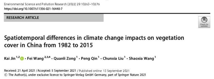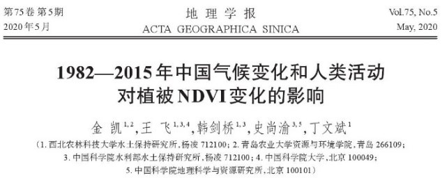 伟德BV官网小流域综合治理与生态保育团队(带头人:宗全利教授)长期致力于流域综合治理、区域生态环境评价等方面的研究。近期,该团队针对气候变化和人类活动对近几十年来中国植被绿化的影响进行了深入研究,同时揭示了植被恢复对气温的反馈作用,相关研究成果发表在《Science of the Total Environment》(IF:7.963,1区)、《Environmental Science and Pollution Research》(IF:5.190,3区)、《Geocarto International》(IF:3.450,2区)、《地理学报》(EI,CSSCI)和《环境科学》(EI)等国内外知名学术期刊,课题组成员金凯副教授、宗全利教授、秦鹏博士和刘春霞博士为论文主要完成人,伟德BV官网为主要完成单位。