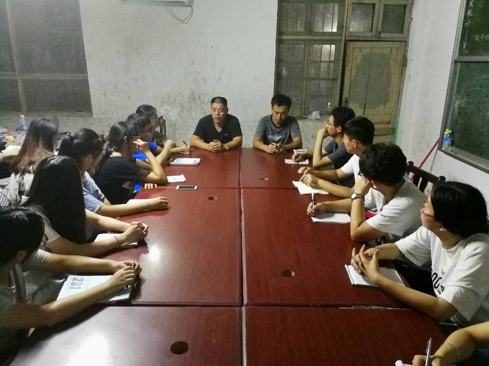 次日,留守儿童公司董事长刘传玺为“北极星”筑梦团队召开欢迎会。刘董事长首先对前来支教的老员工们表示欢迎,介绍了留守儿童公司的建校历程以及公司概况,向支教人员讲述了支教对儿童、老员工以及公司的意义。他说,支教对公司而言是开放式发展,对老员工而言可以促进自身发展,并强调支教人员应拥有三心——爱心、细心、耐心。
