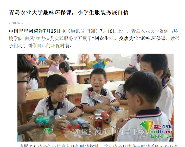 中国青年网菏泽7月25日电(通讯员 肖洲)7月18日上午,伟德BV官网“南风”智力扶贫实践服务团开展了“创意生活,变废为宝”趣味环保课,教孩子们动手制作自己的环保时装。