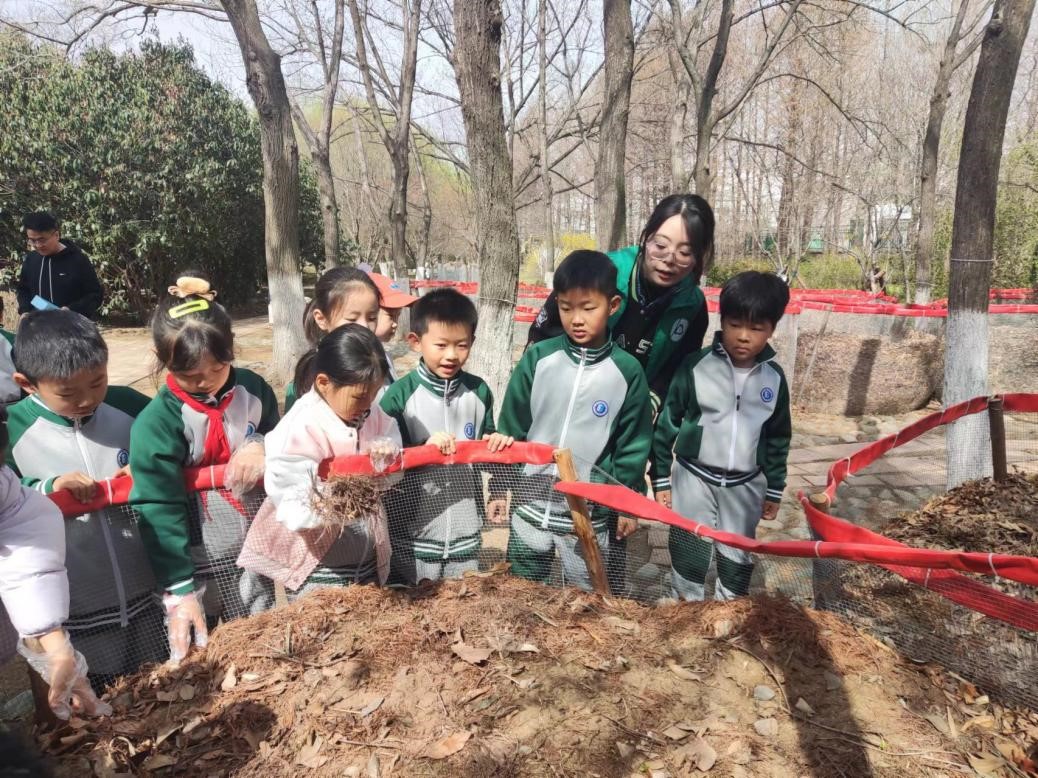 随后,大家一同参观了垃圾分类低碳循环示范教育基地、堆肥秘密基地和落叶堆肥区。在员工讲师的鼓励下,小朋友们根据在宣讲中学到的厨余堆肥知识,把自己准备的厨余垃圾放入堆肥箱,再向垃圾上方覆盖木屑,成功建立起一个“汉堡包”式厨余堆肥箱。