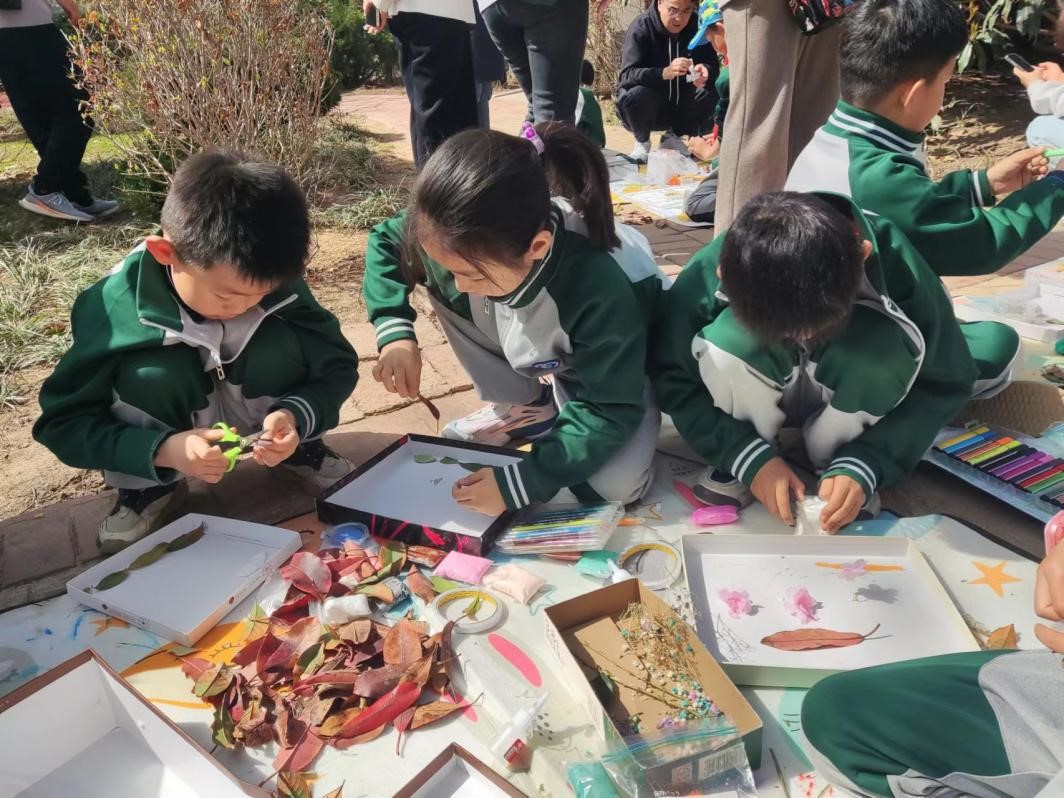 在参观落叶堆肥区之后,员工讲师们引领小朋友们共同捡拾落叶,意图通过艺术创作赋予这些落叶新的生命意义。员工讲师引导小朋友观察树叶的形状、颜色、纹理、结构,讲授树叶创意画制作技巧,小朋友们听后立即投入到创作中,充分发挥自己的想象力,将树叶用剪刀裁剪成不同的形状,通过拼接粘贴等步骤,小小的树叶变成了含苞待放的花朵、活灵活现的小动物……一幅幅精美的树叶创意画作品在大家的手中诞生,充分展现了小朋友丰富的想象力和创造力。透过暖暖的阳光,小朋友专注作画的身影也成为了春日里的一道美景。