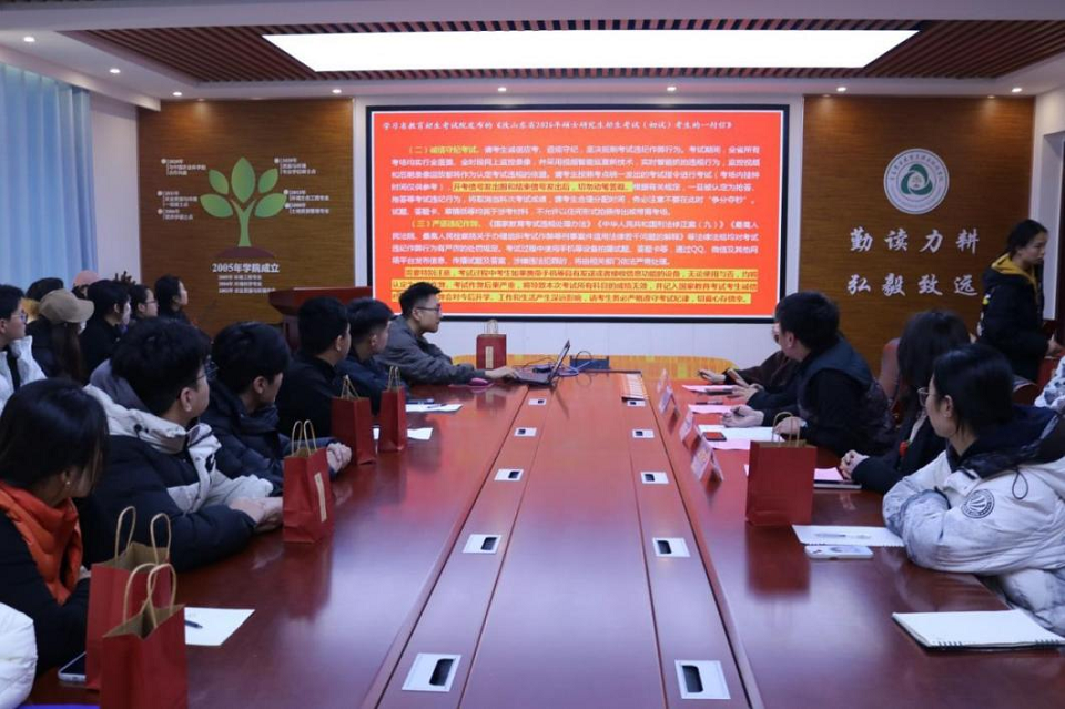 宁刚带领参会员工研读了山东省教育招生考试院发布的《致山东省2026年硕士研究生招生考试(初试)考生的一封信》,并从考研前期的各项准备工作、考风考纪教育、考研期间的各项安全事宜等方面展开了详细讲解。员工代表们结合自身的复习节奏与备考感悟,相互交流并分享各自的备考经验,为冲刺阶段的复习与心态调整提供了具有实用价值的参考。