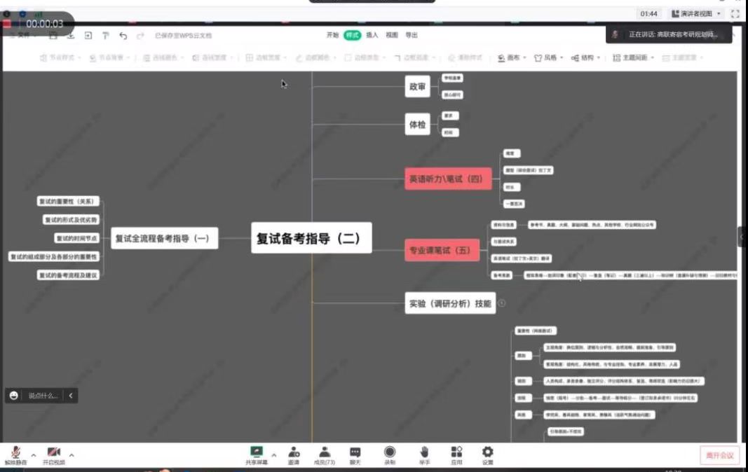 此外,指导老师指出,线下复试要求考生在短时间内将自己最好的一面展现给面试考官,平时的积累固然重要,强大的心理素质,良好的口语表达,得体的服装穿搭等细节同样都是成功的秘诀。最后,老师就如何进行自我介绍、如何应对面试中可能出现的难题、如何正确利用邮件联系自己导师等进行详细讲解,同学们纷纷表示受益匪浅。