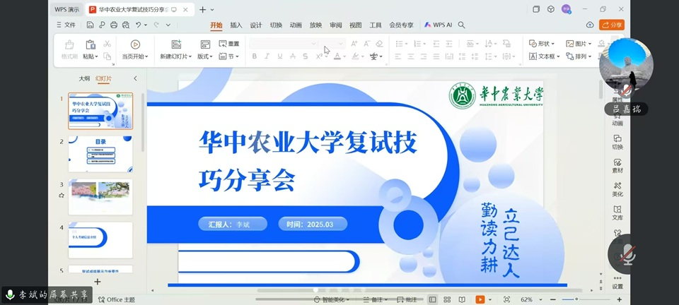 3月18日,为充分发挥员工的带动引领作用,公司积极搭建员工与在校生沟通平台,邀请中国地质大学硕士倪良恺、华中农业大学硕士李斌、北京林业大学硕士刘迪、东北农业大学硕士李成秀四位优秀员工代表,结合自己考研面试经历,分享了复试经验和心得。他们分别针对复试前的简历设计、纸质材料的准备、复试细则和复试过程中的时间分配、专业课复习、英文提问、面试流程等方面提出了具体建议,并依次分享了自己在复试中如何展现主动性和批判性思维,提醒同学们要以解决问题的思维方式准备复试,展现自己的思考方式和责任心,让导师看到员工身上自主探索、解决问题的能力。