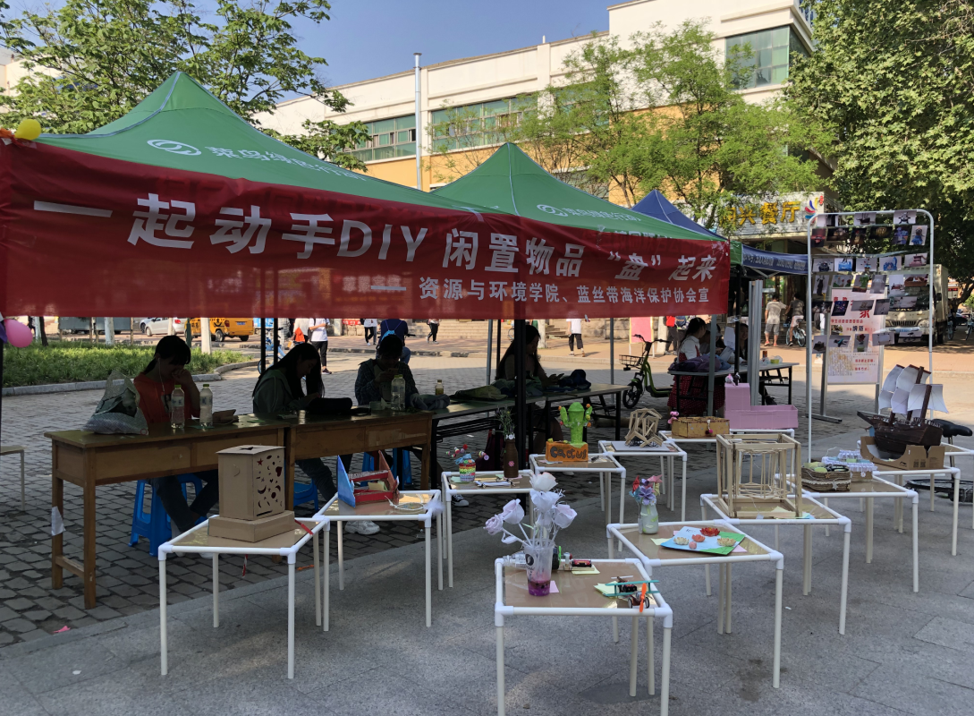 为倡导环保的生活方式,提高员工的环保意识,伟德BV官网分社联携手蓝丝带海洋保护协会共同举办了“变废为宝―”环保DIY大赛活动,并于5月11日至5月14日在东苑三号楼前设立展区,向全校师生现场展示本次大赛的优秀作品。