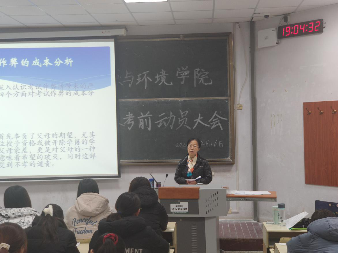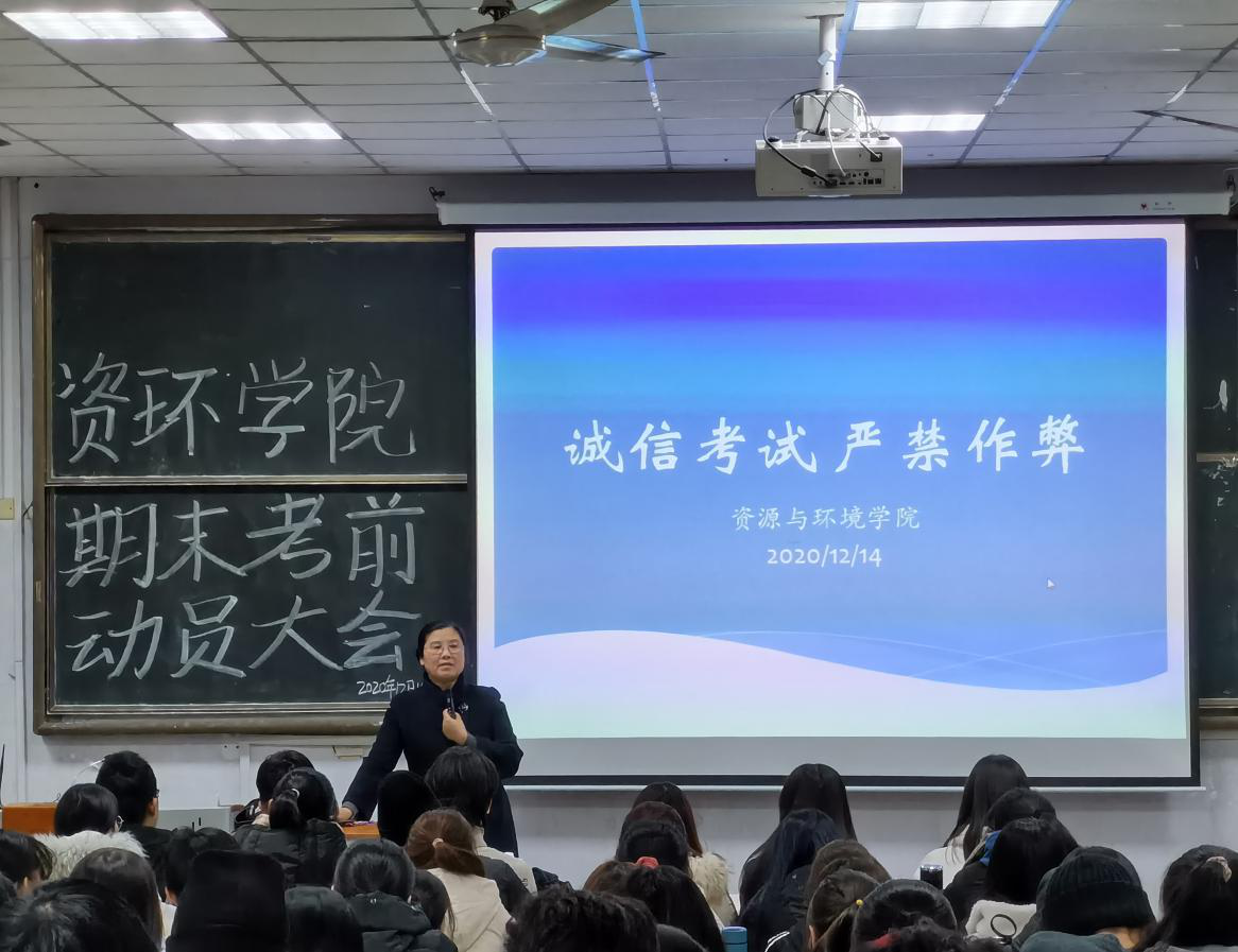 为进一步加强诚信考试教育,使同学们能够认识到诚信考试的重要性,12月16日,伟德BV官网在教学区B区举办了期末考试考前动员大会。此次大会以“诚信考试,严禁作弊”为主题,资环公司党委副书记、副经理林英,副经理柴超担任主讲人,2018、2019、2020级全体员工参会。