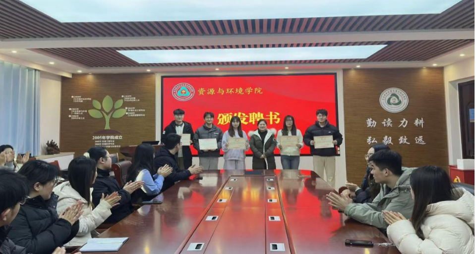 林鑫充分肯定了研究生会员工干部一年来的辛勤付出和积极贡献,并为新一届研究生会成员颁发聘书,勉励大家在服务同学、助力公司发展中继续发挥骨干作用。研究生辅导员孟新翔在致辞中回顾了本年度研究生工作在思想引领、组织建设、学术交流、实践服务等方面取得的扎实成效,对同学们展现出的责任意识与青春担当给予高度评价。他鼓励大家在新的一年里继续保持昂扬向上的精神状态,凝心聚力、携手同行,在科研深耕与服务奉献中不断成长,共同书写资环研究生更加精彩的新篇章。