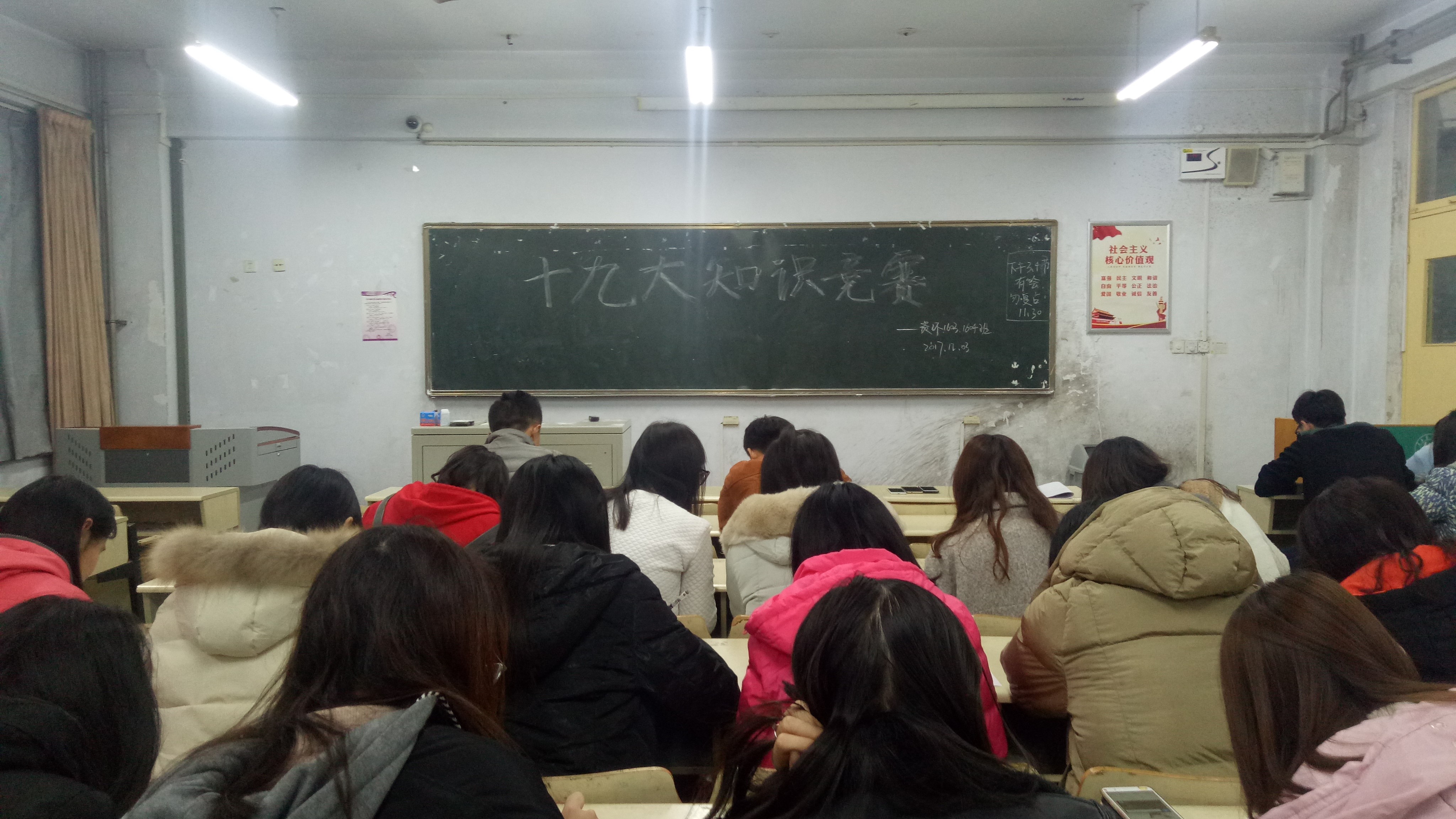 竞赛以党的基本知识、党章党纪、党的十九大报告等为主要内容。资环公司以此次知识竞赛为契机,以赛促学、以学助赛,进一步提高员工对党章和十九大精神的学习热情,提高员工的政治素养。考后各团支部组织进行批阅,成绩前三名的同学代表班级进入复赛。