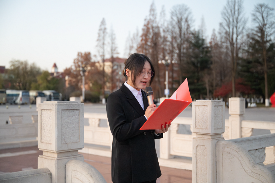 公司员工代表、2022级环境生态工程专业郑琪作“以青春赴使命,以实干践初心”主题发言。她结合自身入学以来的成长经历提出了以下四点倡议:一是以学术为基,在科研探索中厚植家国情怀;二是以实践为翼,在知行合一中锤炼担当本领;三是以奉献为壤,在志愿服务中传递青春温度;四是以责任为炬,在员工工作中凝聚奋进力量。她号召同学们以理论武装思想、以实干锤炼本领,在知行合一中践行青年担当,为中华民族伟大复兴贡献青春力量。