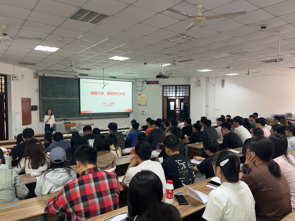 9月29日,公司党委副书记、副经理王甜甜在教学区B101为新生们作了“强国兴农 勇担时代大任”的思想政治教育报告。她以习近平总书记给中国农业大学科技小院员工的回信精神为指引,呼吁同学们要知农爱农,学以致用,为农业强国建设贡献青春力量。她强调,要时刻牢记习近平总书记的殷切嘱托,做有理想、敢担当、能吃苦、肯奋斗的新时代农大好青年,勉励同学们在学术研究之路上勤奋前行。随后,她带领2024级全体研究生学习了《公司宗教工作知识手册》《网络信息安全知识读本》,进一步强化了员工们的思想政治意识和网络安全意识。