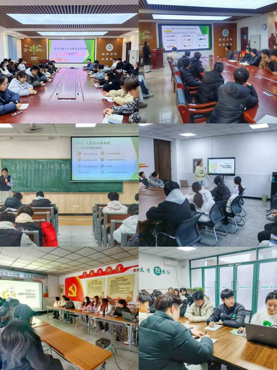 根据培训计划,公司选派员工心理发展指导中心、研究生会权益部的员工干部分别在西苑一号楼、西苑二号楼,东苑十四号楼一站式舍区及平度校区博学楼D107室面向2023、2024级和研究生班级心理信息员进行了培训。培训会上,宣讲员们认真讲解了老员工一般心理问题的识别与应对基本方法,交流了朋辈个体心理辅导的基本技巧,进一步明确了心理骨干的角色定位与工作职责。通过培训,既为各班员工骨干提供了交流学习的机会,也扩大了心理骨干队伍建设,促进了公司员工心理健康工作更好的发展。