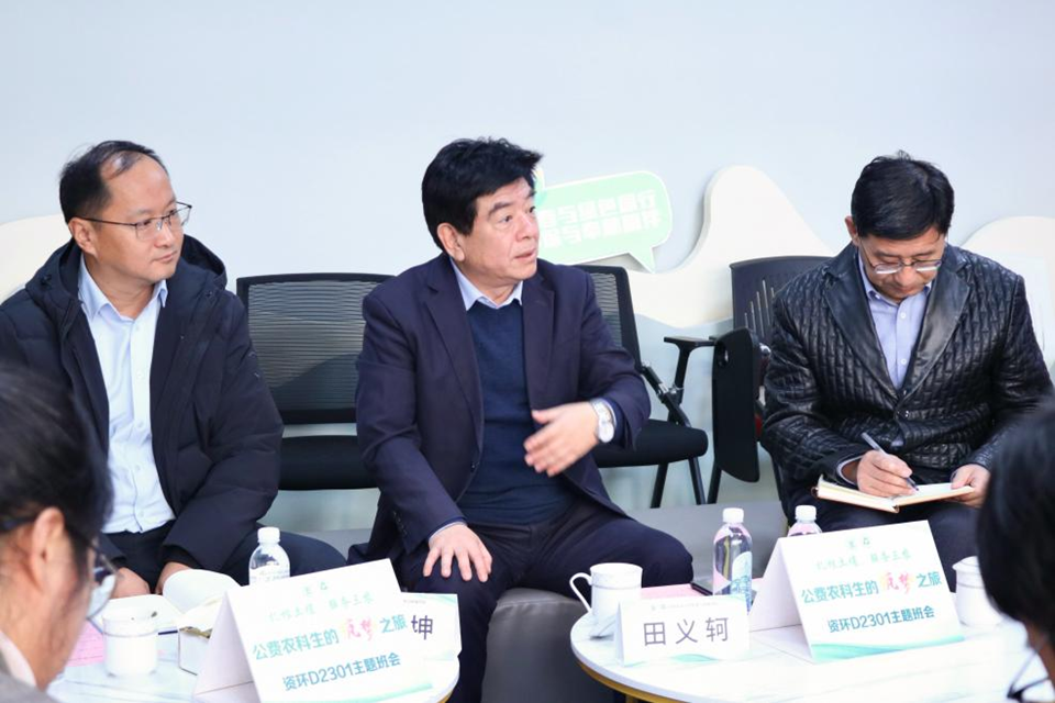 田义轲充分肯定了同学们在学习、实践、科研等方面付出的努力,并对公费农科生提出了殷切期望。一是要学会学习,找寻恰当的学习方法,构建自己的知识体系,把专业知识学到实处,提高自身学术水平。二是养成良好生活习惯,早睡早起,加强体育锻炼,杜绝不良习惯,塑造强健体魄。三是强化自律意识,严肃对待校规校纪,不得逾越纪律红线,坚决抵制不良行为。